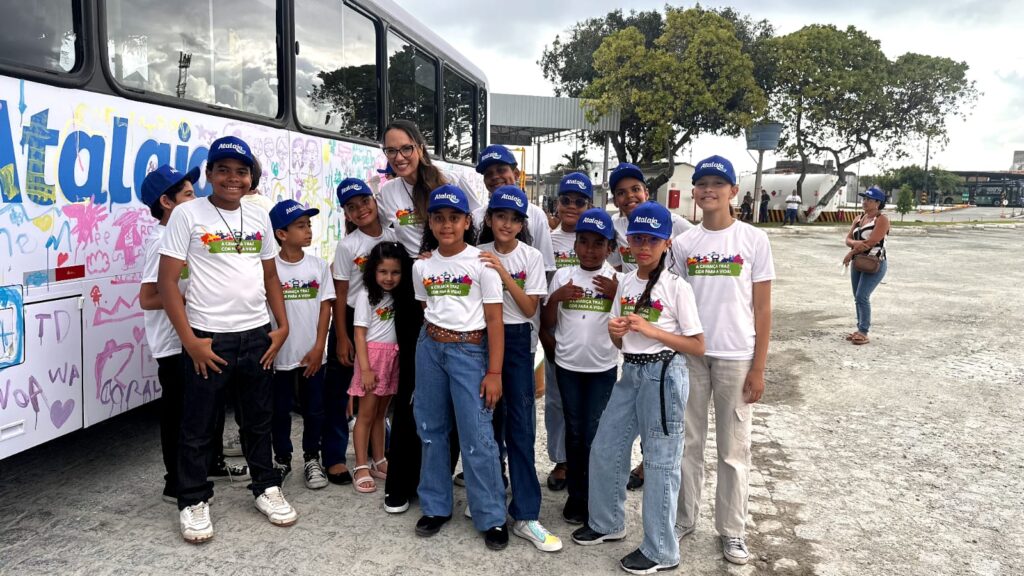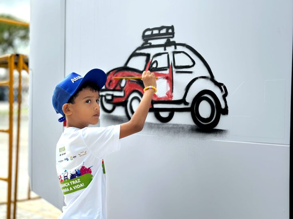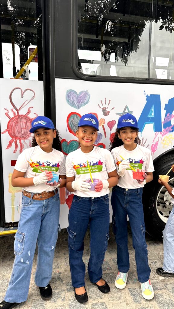 A atividade, que contou com a entrega de lanches e brindes, foi supervisionada por colaboradores da Atalaia e do Setransp, além dos pais das crianças e de representantes das instituições participantes. A arte ficou sob o olhar do artista Korea, que também grafitou no ônibus o slogan da ação, além de outras artes que complementaram a identidade visual criada pelas crianças.