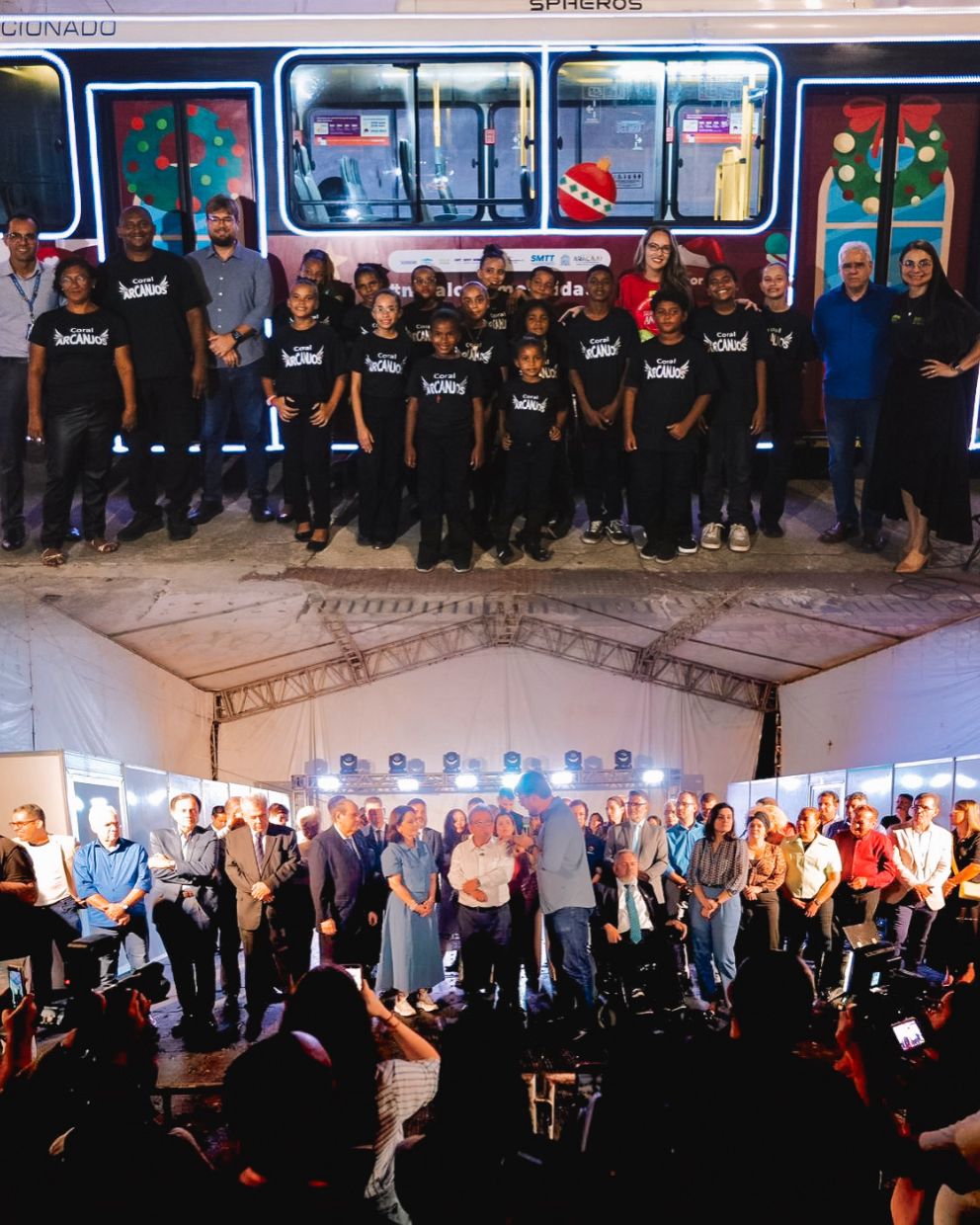 Conduzindo o Coral Infantil Arcanjos, os três ônibus natalinos chegaram à Praça Fausto Cardoso às 18h. Ao abrir das portas do veículo, os visitantes foram recepcionados por uma apresentação musical realizada pelas crianças, marcando a chegada do Natal na mobilidade da Grande Aracaju, que este ano, ganha mais dois ônibus personalizados para a comemoração, contabilizando 5 veículos temáticos.